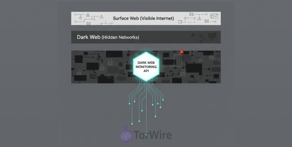 A Dark Web Monitoring API provides programs with structured access to a curated database of darknet activity.