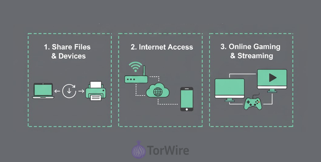 - Gaming and streaming: Local multiplayer gaming (LAN parties!) & streaming media (think movies from your PC to your TV) work so smoothly due to your LAN because it brings speed & low latency from its wired setup.